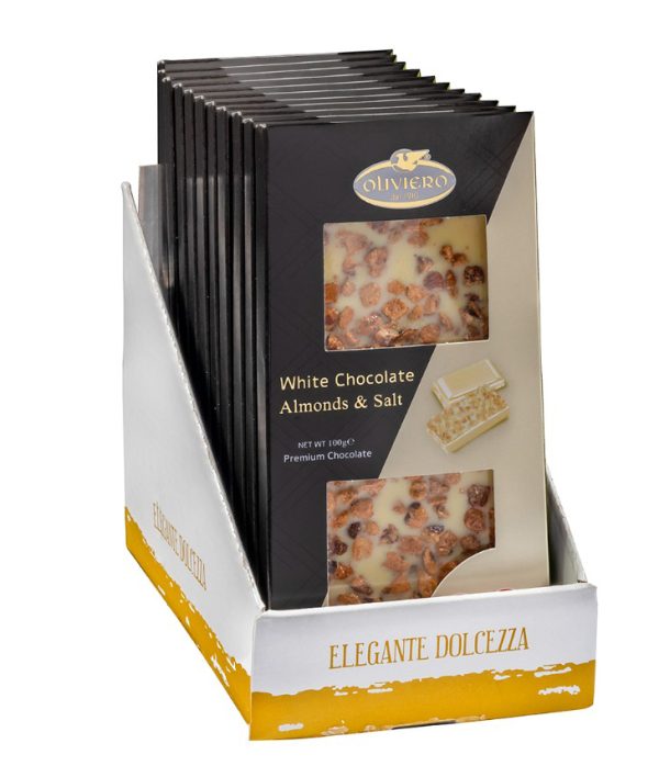 טבלת שוקולד לבן שקדים מלוחים בד"צ 100 גרם 1/12