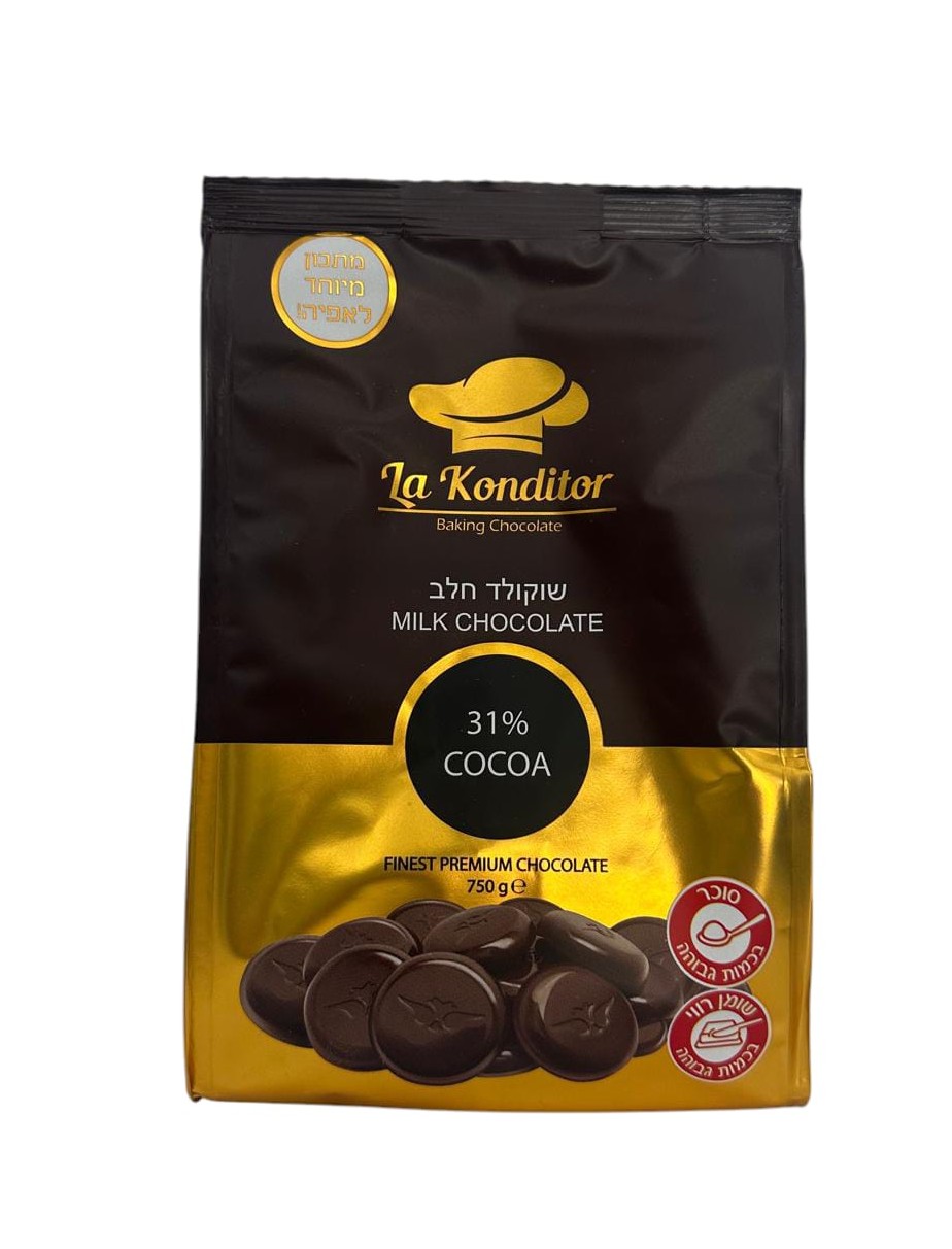 מטבעות שוקולד חלב להמסה 31% קקאו - בד"צ 750 גרם 1/8